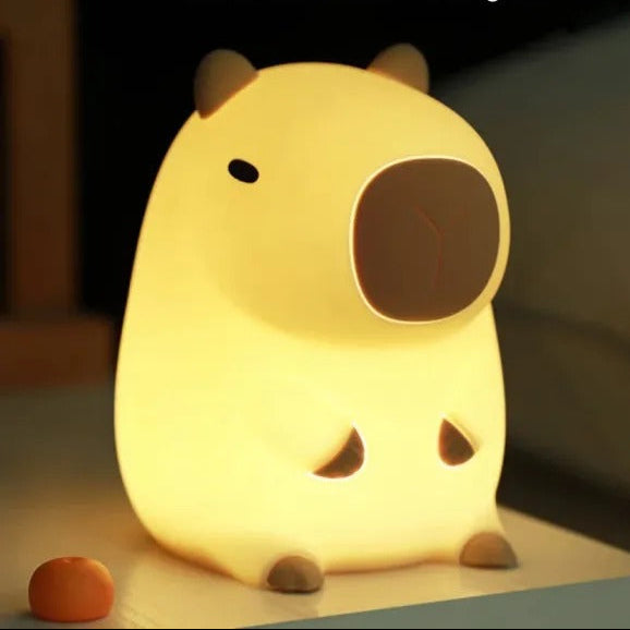 רכה, חמודה, ומפיצה אור חמים שמרגיע כל ילד – מנורת לילה שגם נראית כמו הקאפיברה שמסמלת שלווה, נינוחות ורגש טוב.